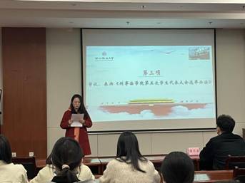 参会学生代表听取和审议工作总结后,大会进入选举第十六届主席团成员阶段。各候选人简要介绍各自的基本情况,大会通过差额选举方式选举出了我院第十六届研究生会主席团成员。