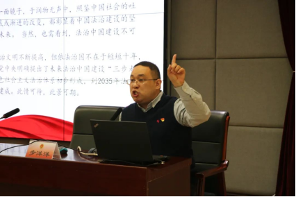 随后,步洋洋做党的二十大精神宣讲。他以法治中国建设为切入点,带大家回忆了新时代法治建设成就,分享了他对新时代的刑事司法改革的思考,并提出要坚定不移全面从严治党。他表示,新时代法治中国建设既有显著成就,又有一定不足,但是,路虽远,行将必至,法治中国建设一定会取得新成效,迈上新台阶。