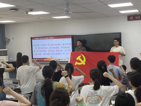课后,在七一即将到来之际,学生第二党支部全体党员面对党旗再次重温入党誓词。