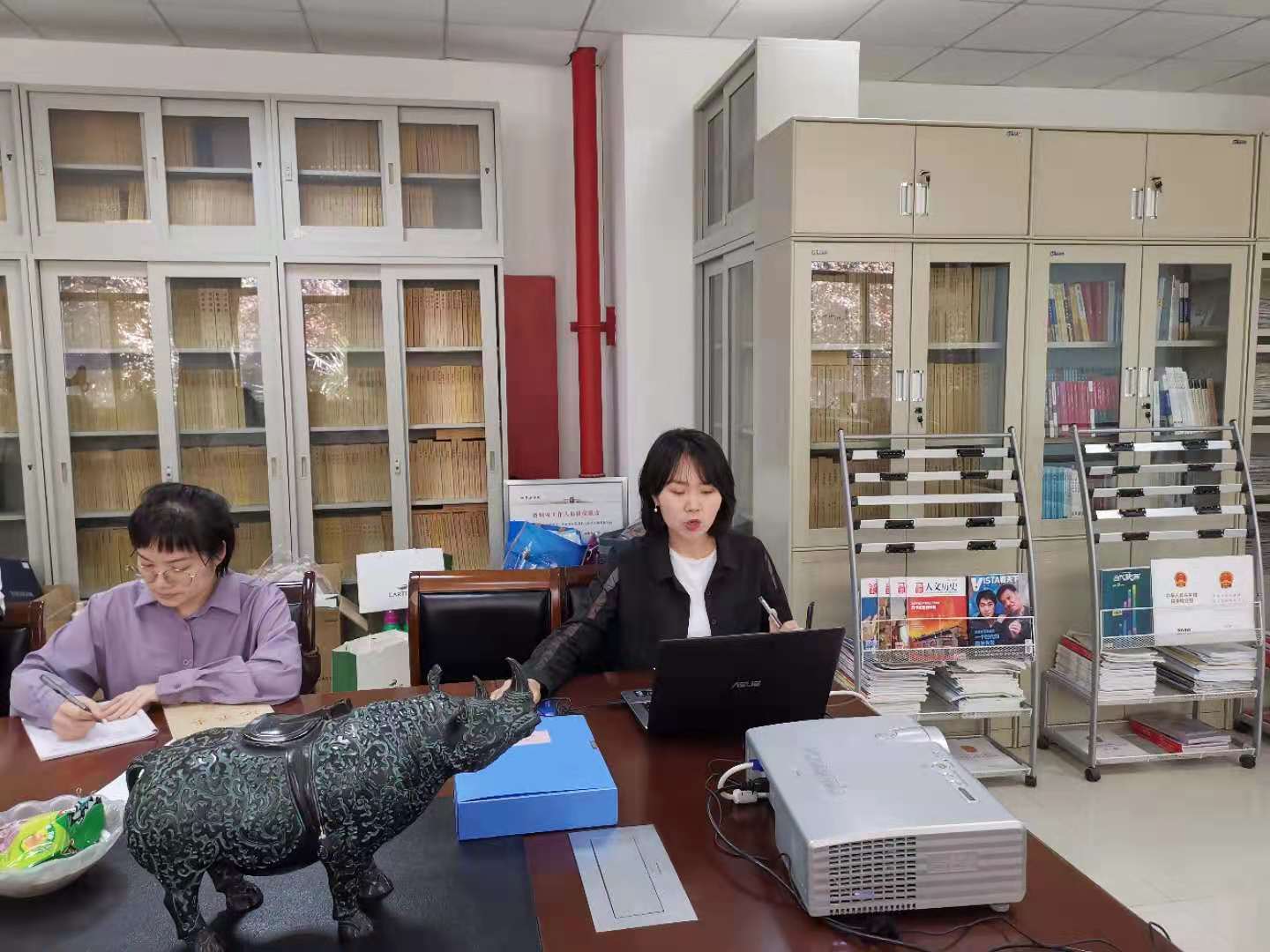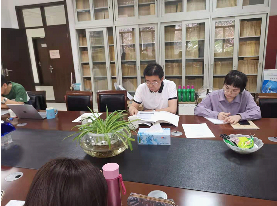 本科生第三党支部书记潘晨子、学院办公室主任高晓伟同志领学习总书记关于治国理政有关论述