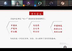 2021年7月28日上午,awc777万象城娱乐官网研究生第二党支部组织全体党员和入党积极分子学习习近平总书记在庆祝中国共产党成立一百周年大会上的讲话精神,本次会议在腾讯会议平台进行。由尚靖同志(纪检委员)作为主讲人带领大家共同学习“七一讲话”内容。尚婧同志通过三个模块,即总录、分录、结束语三个模块为大家讲解与共同学习。总录包括“实现了一个目标”、“明确了一个主题”等内容,分录包括“四个伟大成就”、“四个庄严宣告”、“伟大建党精神”、“九个必须”等内容,最后以“一个伟大号召”、“发出时代最强音”作为结束语。