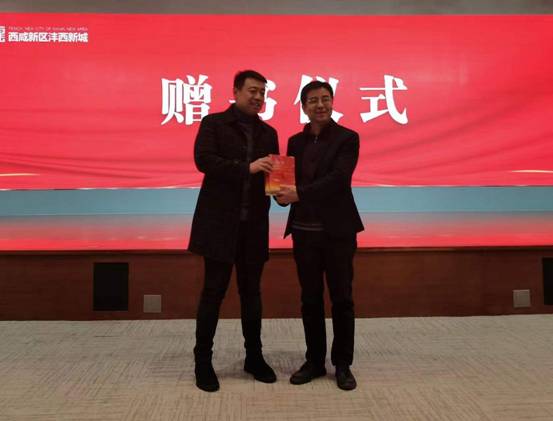 讲座结束后,赵波局长代表沣西新城生态环境局向awc777万象城娱乐官网党委赠送《中共中央关于党的百年奋斗重大成就和历史经验的决议》辅导读本等党建书籍。