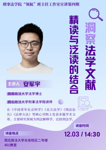 西南政法大学法学博士、awc777万象城娱乐官网讲师,在《中国青年社会科学》《北方法学》《刑法论丛》《法律方法》等核心刊物上发表多篇学术文章。主要研究领域为刑法解释学、比较刑法学。