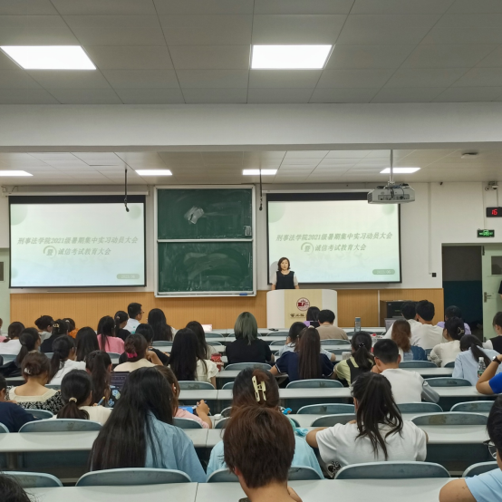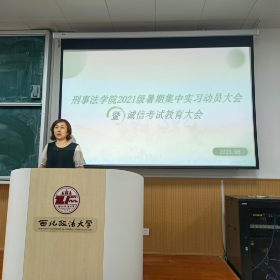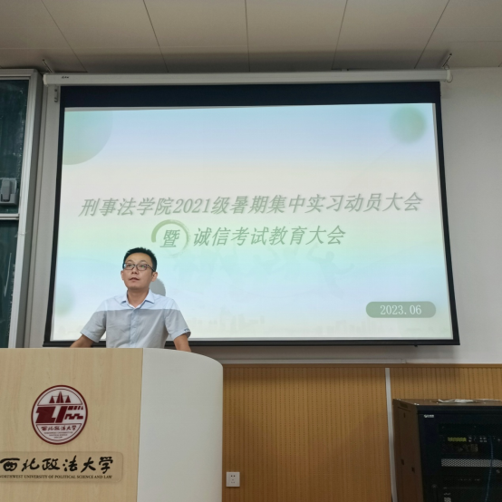 首先,副院长谭堃对我院2023年度暑期集中实习工作开展情况进行了简要介绍。为保证学生集中实习的效果,学院积极联系了集中实习单位10余家,涵盖省内外多个法院、检察院,竭力为同学们的专业实习提供对口单位。截止目前,我院报名参加集中实习学生约170余人,集中实习率超过60%。同时他对2021级即将参加暑期集中实习的同学们提出了几点要求:一、要求同学们在实习期间遵守单位规章制度,不迟到不早退,严格遵守工作纪律和相关保密规定;二、注意自己的言行举止,实习期间每个同学都代表了学院和学校的形象,要时刻维护学校荣誉,展现西法大学生良好的精神风貌和专业素养;三、叮嘱同学们时刻牢记安全纪律,夏季谨防发生溺水等安全事故,如遇突发状况一定要及时与学院取得联系。