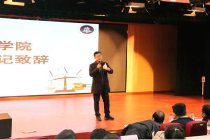 孙学龙致活动开幕辞。他表示本届大赛赛制改革创新,增加了竞争性和可看性,给同学们提供了专业学习交流的平台。他代表学院对评委、嘉宾和工作人员表示感谢,尤其对北京方圆众合教育对活动的大力支持表示感谢,并预祝活动圆满成功。