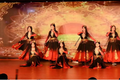 古丽期曼、高哈尔等表演的新疆舞《夏合娜孜》,充满异域风情,姑娘们美丽大方又热情洋溢,如骄阳般热烈的青春在舞蹈中尽情绽放。