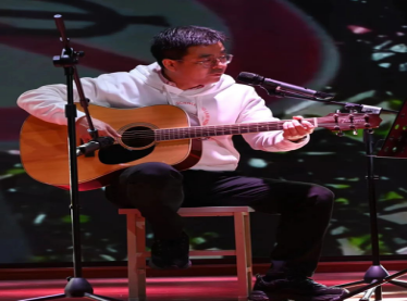 翟艺丹老师带来一首《听见下雨的声音》。细腻婉转的旋律,清澈空灵的嗓音,在朦胧梦幻中给我们营造了一个静谧的雨中世界,让观众沉浸其中。