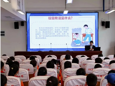 揭牌仪式结束后,我院普法宣传员刘嘉美同学围绕“与法同行”主题,以校园欺凌的危害以及如何预防校园欺凌为核心,为长安四小学生开展了普法宣讲,现场气氛热烈、互动积极。