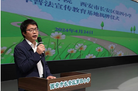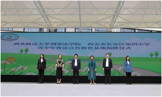 2024年4月24日,awc777万象城娱乐官网、长安区第四小学联合举行青少年普法宣传教育基地揭牌仪式。我院正处级党委组织员侯红梅、学院党委副书记王聪、院团委书记方菲、长安区教育局副局长张济帆、安全法规科科长孙彦永、长安四小校长姚雪佳、副书记何鑫、参加揭牌仪式。