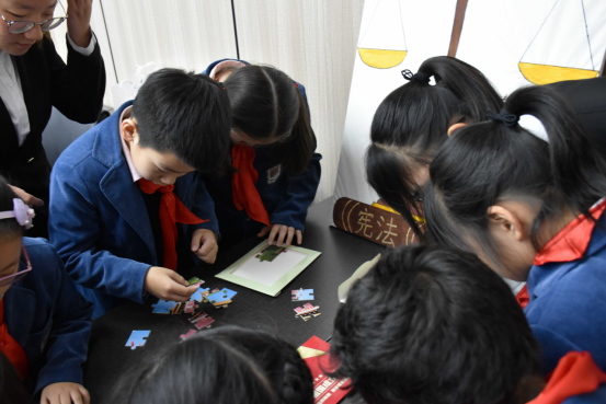 同学们在观看模拟法庭时,既认真专注又有独立思考,对于主持人就模拟法庭提出的一些法律知识小问答纷纷举手作答;主持人还随机邀请了几位小朋友参与拼图游戏并鼓励大家写下自己观看完模拟法庭的感受;西安小学学生代表唐豆小朋友也用她稚嫩的声音表达了自己对法律的理解和活动的感受。丰富多样的形式让晦涩的法律条文变得通俗易懂,创新了宪法宣传的方式和途径,促进宣传教育活动更接地气取得更好的效果。