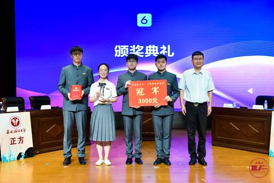 最终,西南政法大学获得冠军,学校郭武军副书记为冠军队颁发了证书。西南政法大学朱立人,华东政法大学李敦灏优秀的表现获得决赛最佳辩手。