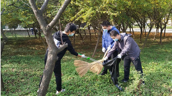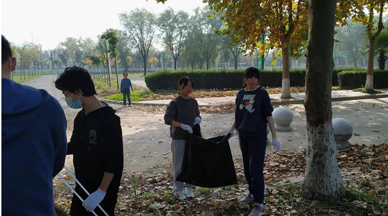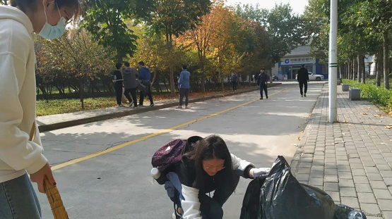 10月30日下午,学院组织2019级学生志愿者开展校园公共区域清扫活动。院党委副书记侯红梅老师、19级辅导员张瑞老师一同参与了清扫活动。伴随着秋日的暖阳,同学们充满了劳动的热情,左手拿着黑色垃圾袋,右手戴着白色手套,拿着铁夹和扫帚,俨然成为了“校园文明小卫士”,不放过任何一个角落,对校园垃圾进行全面彻底清理,为净化校园环境做出自己的贡献。