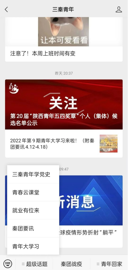 关注青春西法大公众号点击底部菜单栏[团学之声]选择[大学习登录]