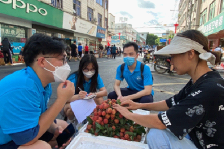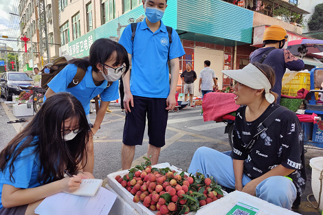 7月16日上午,团队一行来到沙湖农贸市场,针对当地荔枝产业进行走访调研。队员们通过与农户进行面对面访谈、发放调查问卷等形式,收集到当地荔枝的种植品种、产量、销售额及销售途径、历史渊源等相关信息,并对此进行整理归纳,使团队成员对当地荔枝产业的现状有了更为深入的理解。此外,队员们通过了解果农们对于广东岭南荔园发展有限公司等荔枝行业龙头企业的观点,为第二天前往广东岭南荔园发展有限公司进行调研提供了依据。