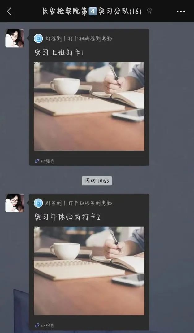 实习工作开始后,队长刘雨萌有序组织,利用线上小程序实现上班打卡,高效便捷,方便核实实习人数,确认实习小队成员的安全。