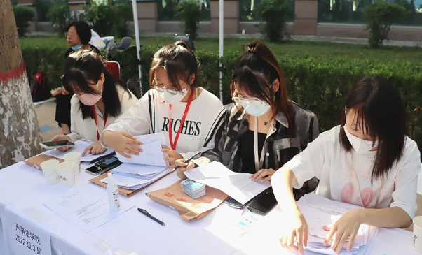 早晨七点,2022级辅导员刘雨鑫老师、我院步洋洋等老师、学生志愿者们已至awc777万象城娱乐官网迎新站点,准备着迎新工作,以最饱满的热情,迎接新生到来。无论是交接档案,还是为萌新们分发体检单、学生卡……一切工作都在有条不紊地进行着。