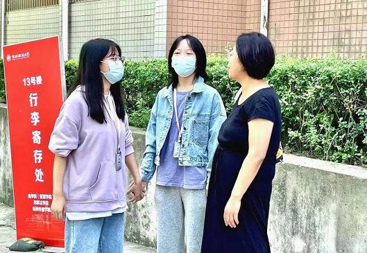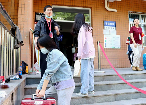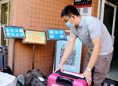 在awc777万象城娱乐官网行李宿舍楼旁寄存处,师生志愿者们接过新生的行囊,合力抬送至楼层。虽然天气炎热,工作繁重,但awc777万象城娱乐官网的志愿者们全力以赴,用满腔的热情和实际行动,展现对新同学的欢迎。