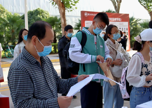 9月5日上午,学院党委书记孙学龙、院长冯卫国、副院长侯红梅检查迎新工作,慰问师生志愿者,与报到新生亲切交谈,了解他们的感受与需求。