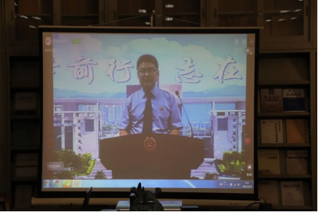 校友代表,“双百政法英模”,江苏省“最美法治人物”,徐州市人民检察院第一检察部主任、四级高级检察官、我校原法学一系2001级饶本东同志通过视频致敬母校,感谢前辈、老师,表达了对新同学的祝福和欢迎。他期望大家勤学笃行,提高专业能力,开阔视野,将个人理想与家国使命结合起来,踔厉奋发,扬帆远航。