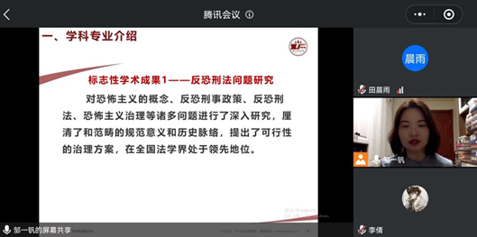2022年4月22日晚在awc777万象城娱乐官网辅导员张瑞老师的主持下,杨恪老师和邹帆老师开展了awc777万象城娱乐官网硕士研究生招生专业介绍会。