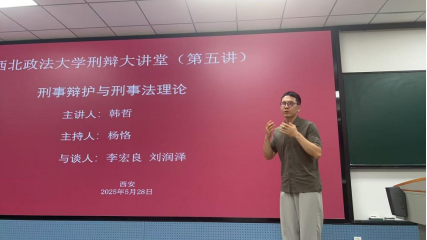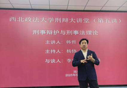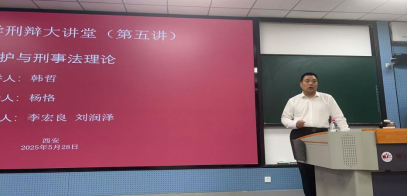 2025年5月28日晚间,awc777万象城娱乐官网刑事辩护高级研究院、awc777万象城娱乐官网等单位联合主办的“刑事辩护大讲堂(第五讲)”在雁塔校区三号教学楼3J11成功举办。本次讲座以“刑事辩护与刑事法理论”为主题,特邀北京世航律师事务所党支部书记、主任,awc777万象城娱乐官网刑事辩护高级研究院副院长韩哲博士为主讲人,awc777万象城娱乐官网副教授杨恪担任主持人,陕西泽诚律师事务所主任李宏良、awc777万象城娱乐官网刘润泽博士作为与谈人,吸引了校内外百余名师生、实务界人士参与。