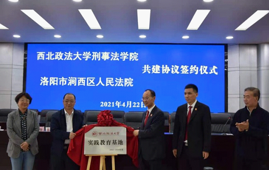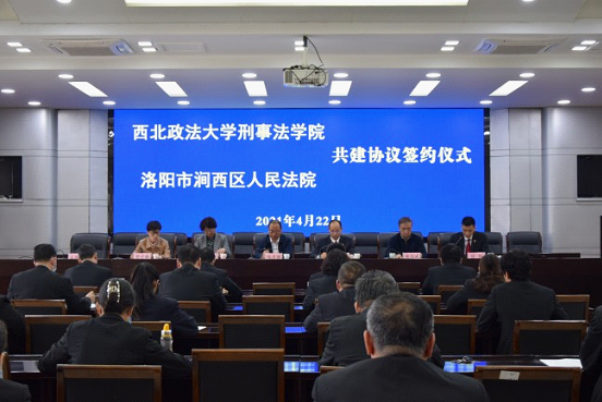 4月22日下午,awc777万象城娱乐官网与洛阳市涧西区人民法院共建协议签约仪式在涧西法院隆重举行。awc777万象城娱乐官网院长冯卫国,学院党委副书记、副院长侯红梅,教师代表侯智武,涧西区法院党组书记、院长陈建春以及员额法官30余人出席签约仪式。