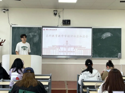 学校会议指出,本科教育教学审核评估是对我校综合实力、办学水平、整体发展的全面考察,是深化学校教育评价改革的重大机遇,是加快学校事业高质量发展的重要抓手。本次评估对我院来说也是自我审视、自我总结、自我提升的契机,全院师生应进一步提高政治站位,广泛宣传交流,充分发挥主体作用尤其是学生骨干的模范带头作用,引导全体同学加强对审核评估的学习理解。全院上下要以培养优良校风学风为目标,深入推进思想培育学风、管理塑造学风、榜样引领学风、实践助力学风、队伍引导学风,营造“人人知晓、人人参与、人人共建”的良好氛围,切实做到以评促建、以评促改、以评促管、以评促强。