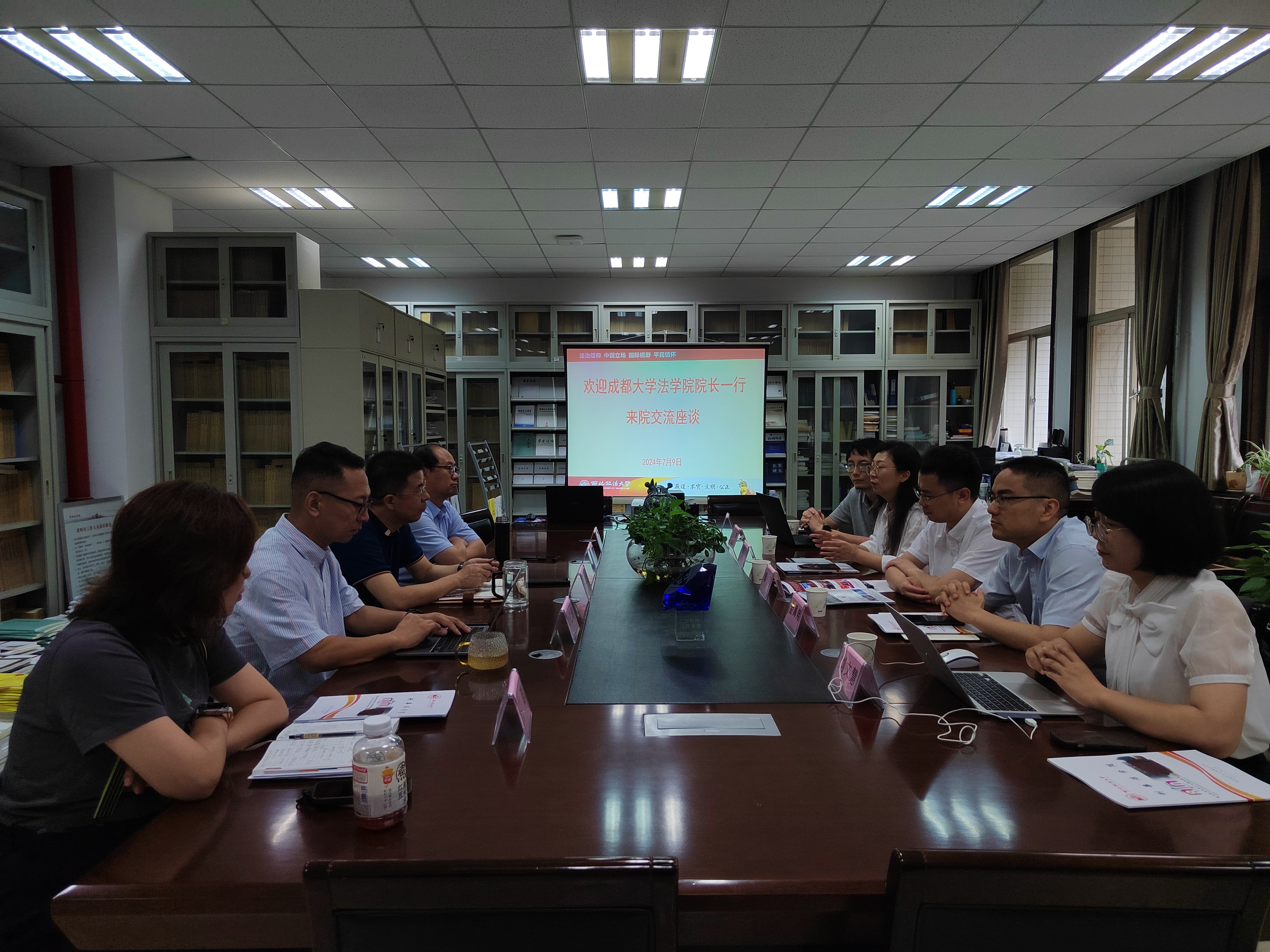 2024年7月9日上午,成都大学法学院邓陕峡院长一行到访awc777万象城娱乐官网,就学科建设、科学研究、教学实践、学生就业等工作交流座谈。本次座谈由学院副院长刘仁琦主持。