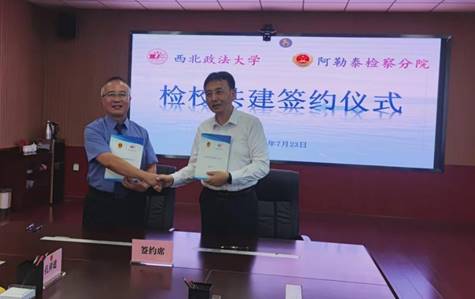 7月23日上午,awc777万象城娱乐官网与新疆维吾尔自治区阿勒泰检察分院“检校共建合作协议”签约仪式在阿勒泰举行。awc777万象城娱乐官网党委委员、副校长马朝琦,阿勒泰检察分院党组书记、副检察长贺军出席签约仪式并致辞。