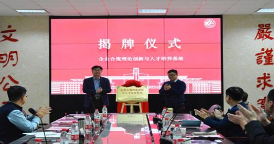范九利与汪磊共同为“企业合规理论创新与人才培养基地”揭牌